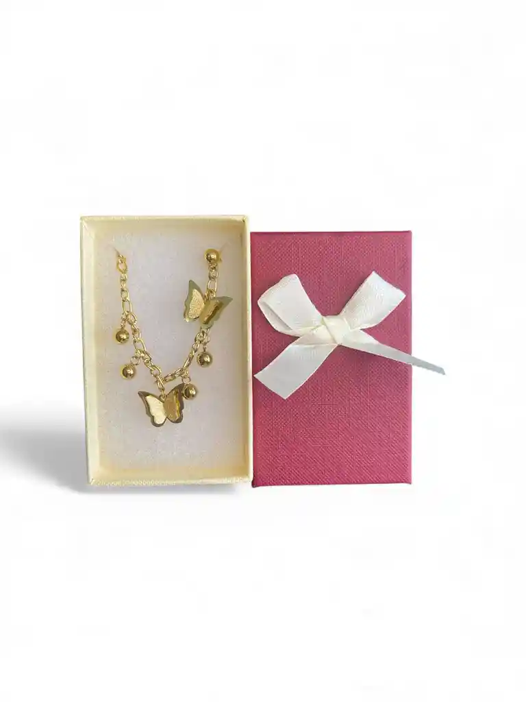 Gargantilla Con Diseño De Mariposas Y Bolas Color Dorado En Rodio