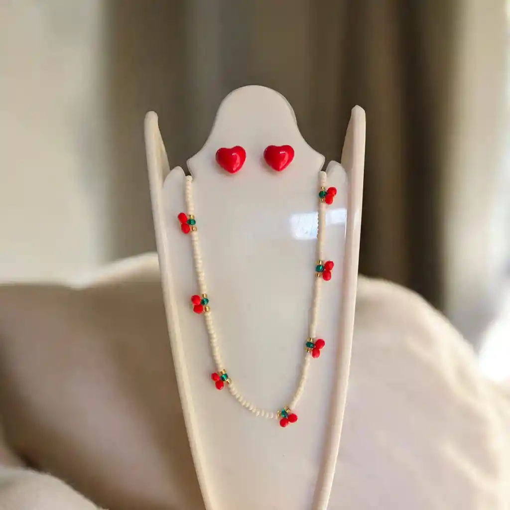 La “Gargantilla Delicadeza Roja y sus zarcillos” son una pieza fina y elegante que destaca por su diseño sutil y femenino. Su delicado detalle en tono rojo, simboliza el amor sincero y la belleza que nace del corazón. Es un recordatorio constante de la fuerza transformadora del amor verdadero. “Y ahora permanecen la fe, la esperanza y el amor, estos tres pero el mayor de ellos es el amor.” — 1 Corintios 13:13