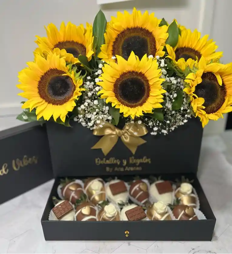 Gaveta de lujo con girasoles Colores de caja de acuerdo a disponiblidad.