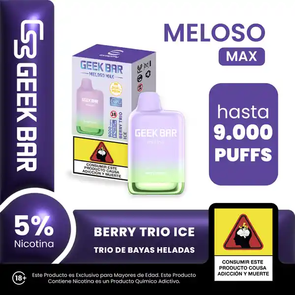 El Geek Bar Meloso Max Berry Trio Ice es un vaporizador desechable de 9000 caladas con un delicioso sabor a fr...Ver más