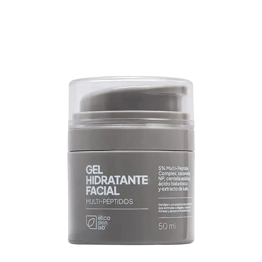 Gel hidratante facial ultra ligero y sin aceite con péptidos avanzados. Ayuda a mejorar firmeza, textura y elasticidad, mientras hidrata, calma y fortalece la barrera de la piel. Con efecto antiedad visible, ideal para uso diario y todo tipo de piel. Beneficios clave: Hidratación ultra ligera y sin aceite, ideal para uso diario Complejo de péptidos al 5% que estimula colágeno y elastina Efecto antiedad y “efecto botox”: piel más firme y suave Ayuda a mejorar la textura y elasticidad de la piel Calma y descongestiona la piel sensible Refuerza la barrera cutánea y mantiene la hidratación prolongada Aporta luminosidad y protección antioxidante No comedogénico, apto para todo tipo de piel Envase airless opaco que preserva la eficacia del producto