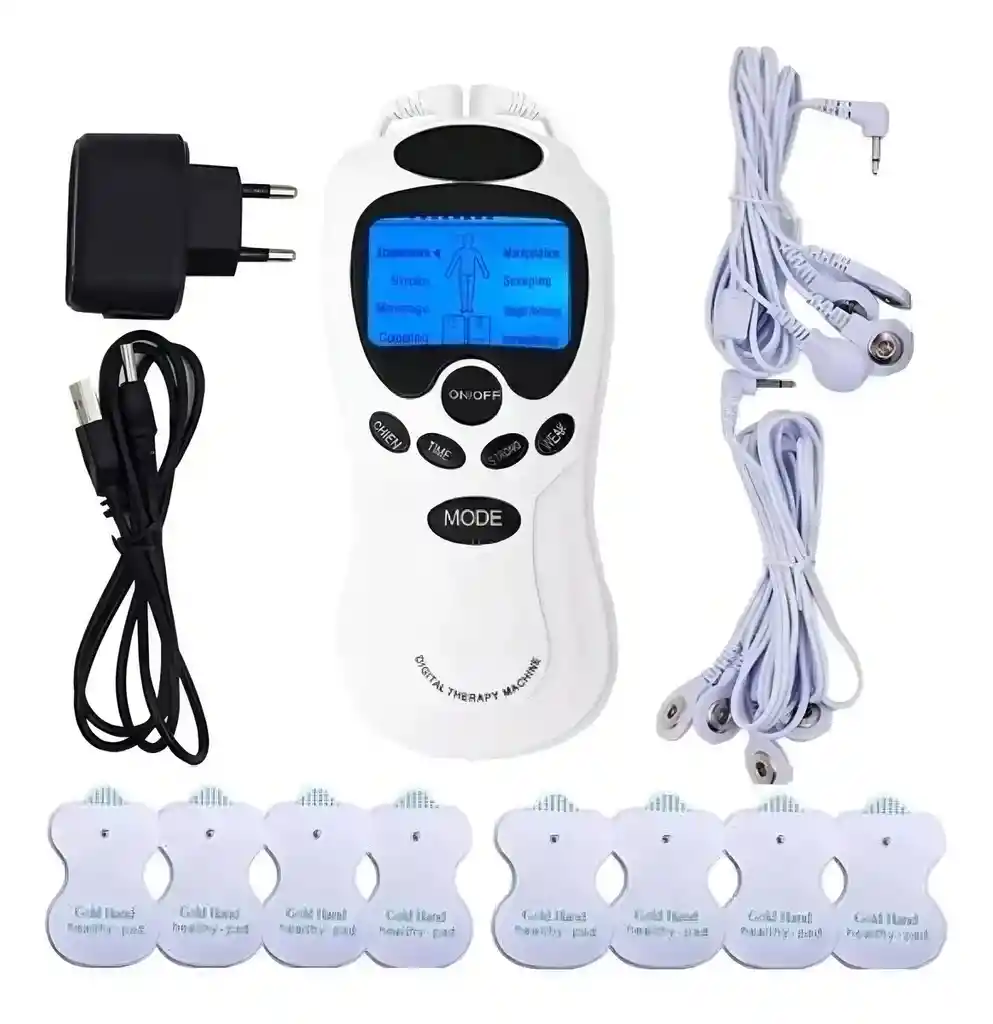 Función principal: Utiliza corrientes eléctricas suaves para aliviar dolores musculares, tonificar músculos y mejorar la circulación. Componentes: Incluye una unidad central digital, cables de conexión y 8 almohadillas de electrodos adhesivas. Modos: Ofrece diferentes modalidades de masaje, como acupuntura, golpeteo, masaje terapéutico, ventosas y raspado. Advertencia: No debe ser utilizado por personas con marcapasos u otros dispositivos electrónicos internos trasplantados.