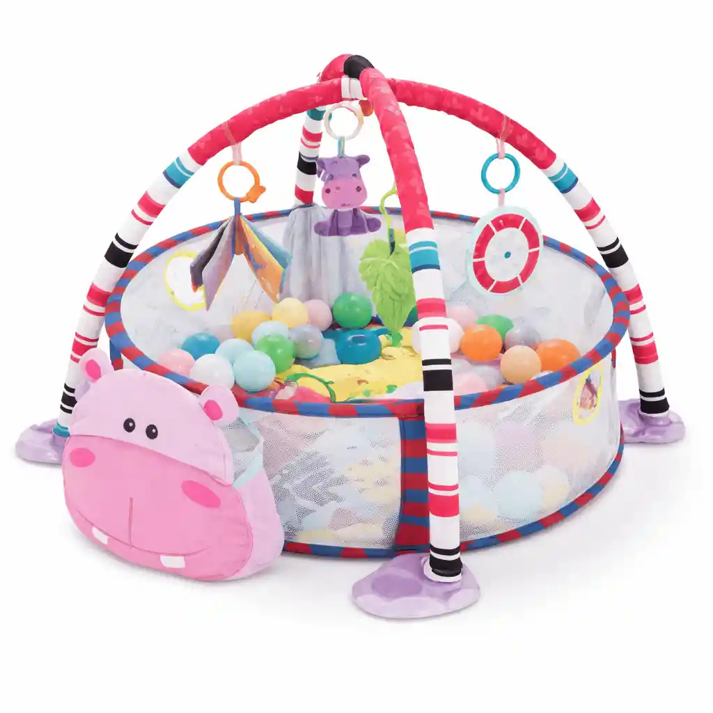 Dale a tu bebé un espacio seguro y divertido para jugar y desarrollarse con este gimnasio y corral con piscina de pelotas, ideal para estimular sus sentidos desde los primeros meses. Su diseño tipo corral ayuda a mantener al bebé dentro de un área protegida mientras explora, se mueve y juega con total comodidad. Incluye arcos con juguetes colgantes que llaman su atención, favorecen la coordinación mano-ojo y motivan el agarre, además de pelotas de colores que convierten el juego en una experiencia más interactiva. La malla lateral permite una excelente ventilación y te da visibilidad para supervisar en todo momento. Perfecto para usar en casa, es práctico, ligero y fácil de ubicar en diferentes espacios, creando un área de entretenimiento que acompaña el crecimiento del bebé y promueve el movimiento, la curiosidad y el aprendizaje.