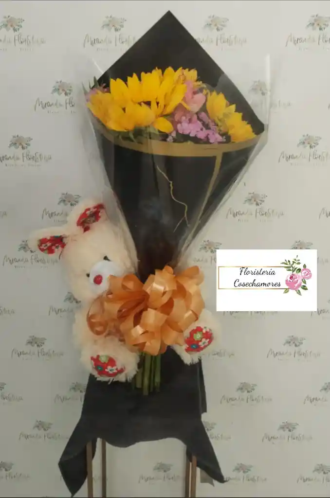 Bouquet de 3 girasoles con peluche