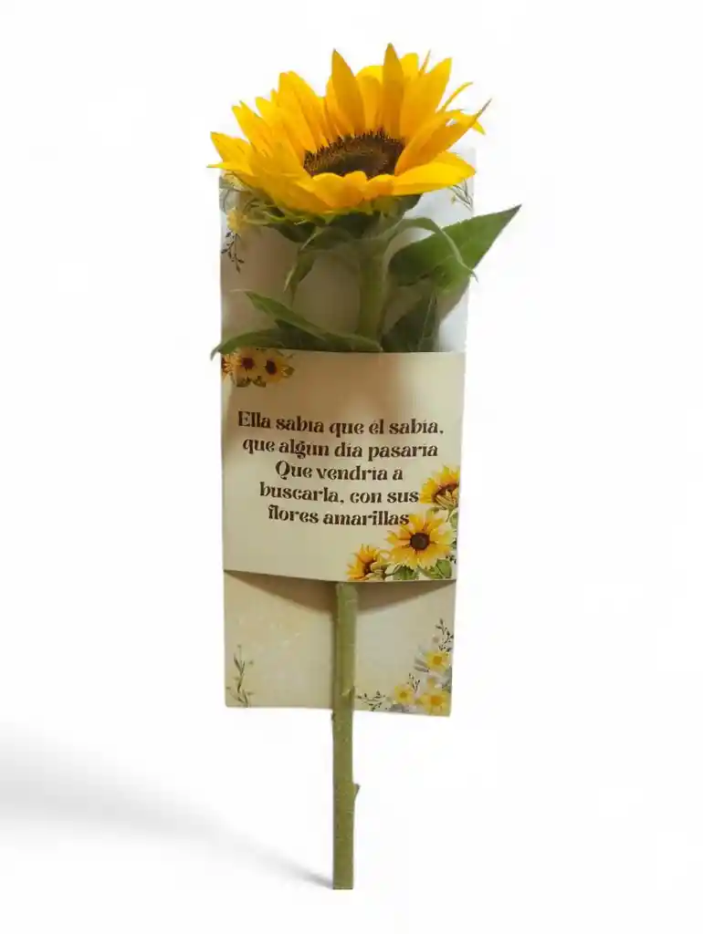 Solitario de girasol. Foto de referencia . Si desea mensaje para las flores dejarlo en la parte de (dejar un comentario al shopper) o en el chat del Rappi.