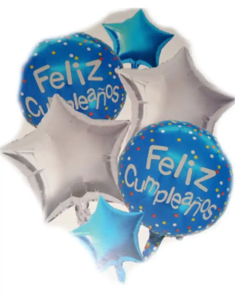 Hermoso juego de 5 globos para celebrar cumpleaños , metalizados de diferentes figuras, 18" sin helio