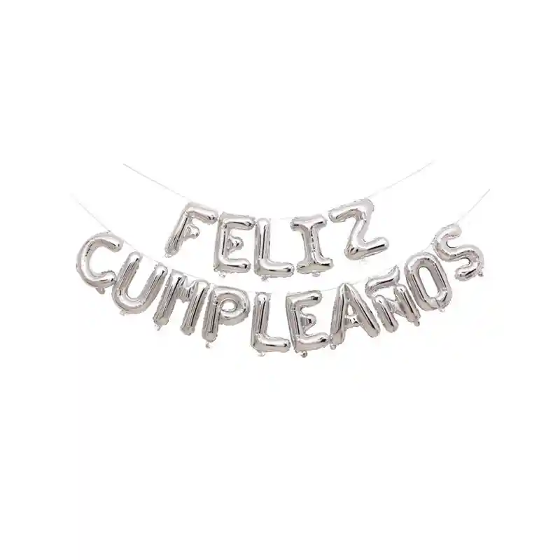 Contiene 15 Unidades, Letrero Decorativo de Feliz Cumpleaños en Color Plateado