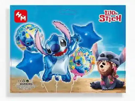 GLOBO METALIZADO BOUQUET 5 PIEZAS Lilo Y Stitch. Se envía desinflados, para inflar su letrero, números, globos metalizados y globos de látex, tenemos disponible en nuestra tienda el INFLADOR MANUAL. No olvide incluirlo en su pedido