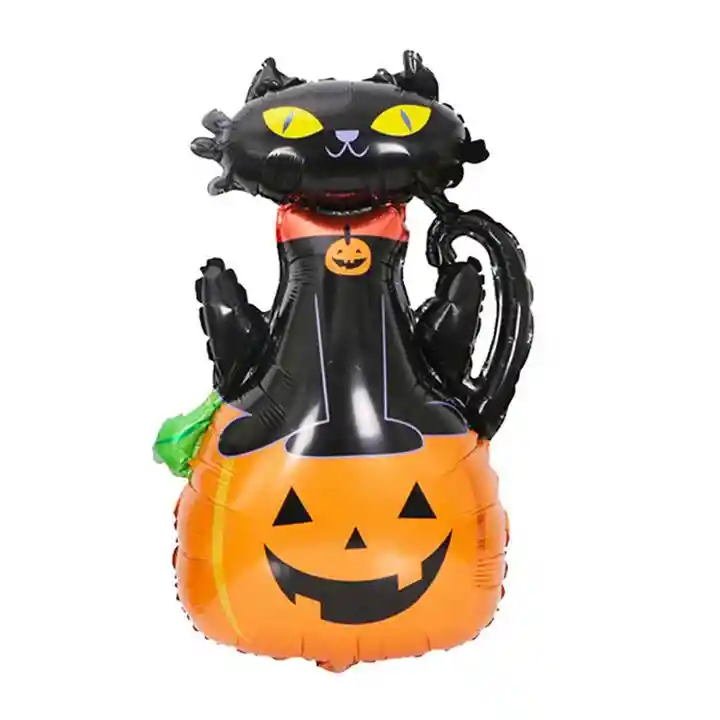 Globo Metalizado Calabaza Con Gato Halloween Sin Inflar