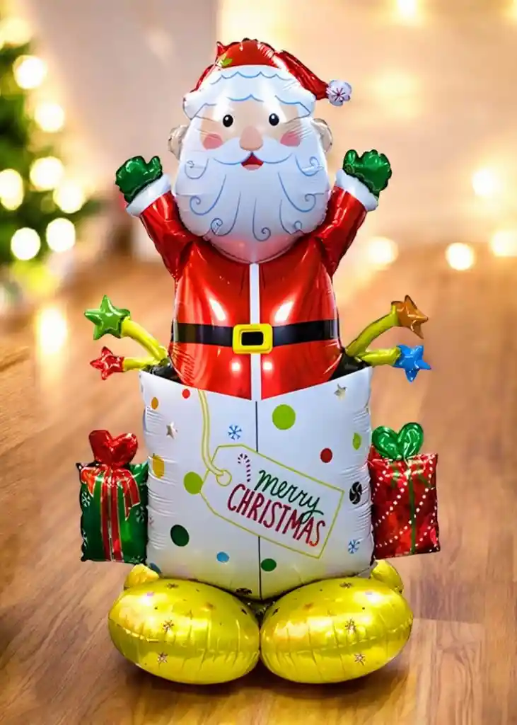 Decora tu Navidad con este hermoso globo metalizado de Santa Claus, tamaño gigante, ideal para ambientar fiestas, eventos, vitrinas y fotos familiares. Su diseño brillante y colores festivos lo convierten en la pieza perfecta para destacar en cualquier espacio. Características: •Medidas: 1.26 m de alto x 1.00 m de ancho •Material foil metalizado resistente •Colores vivos y diseño navideño de alta calidad •Fácil de inflar con bomba manual o pajilla •Perfecto para decoración de hogares, negocios y celebraciones temáticas Importante: •El globo viene desinflado. Importante! Tener en Cuenta: •El globo viene desinflado Globos metalizados con garantía (antes del inflado) •La garantía aplica únicamente si el globo presenta un defecto visible antes de ser inflado, como: •Sellado defectuoso. •Orificios visibles sin haber sido manipulado. •Falla evidente en la unión del material (únicamente sin inflar). •El globo debe ser entregado en las mismas condiciones en que fue recibido: sin inflar, limpio y sin señales de manipulación. ❌ Globos sin garantía (después del inflado o manipulación) •Una vez el globo se infla pierde garantía, ya que el 99% de rupturas ocurre por factores ajenos al fabricante: •Exceso de presión o tipo de bomba utilizado. •Sobreinflado. •Cambios de temperatura. •Manipulación indebida, arrugas extremas o rasgaduras. •Contacto con superficies calientes, puntiagudas o abrasivas. •Intentos de reinflado o modificación del globo. •Los globos arrugados, reventados, rasgados o perforados después del inflado no tienen garantía.