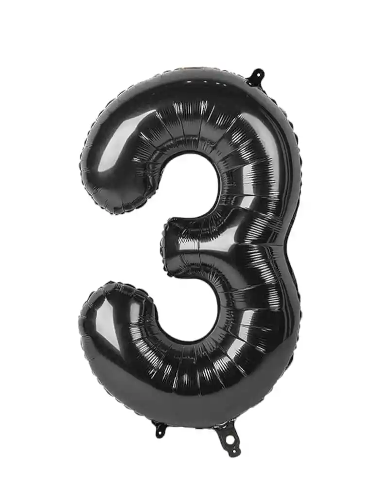El globo metalizado número 3 en color negro de 32" pulgadas es la elección ideal para resaltar momentos especiales con una decoración elegante. El globo Se entrega sin inflar.