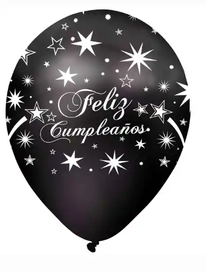 El paquete contiene: * 12 Globos impresos negro feliz cumpleaños R12 (30 cm) tinta dorada escarchada