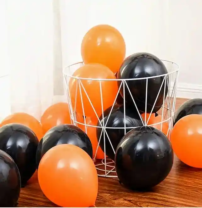 Globo Surtido Halloween Negro y Naranja Fashion R12 (Bolsa x 50 Unidades) Descripción: Celebra Halloween con estilo y color con este surtido de globos Fashion R12 en tonos negro y naranja. Perfectos para decorar fiestas, eventos o vitrinas temáticas con un toque elegante y festivo. •Tamaño: R12 (aprox. 30 cm de diámetro) •Colores: Negro y Naranja •Presentación: Bolsa por 50 unidades •Material: Látex de alta resistencia •Uso: Ideal para inflar con aire o helio 👉 Otros elementos mostrados en las imágenes son solo para ambientación; el producto incluye únicamente los globos. •Los globos se envían Desinflados