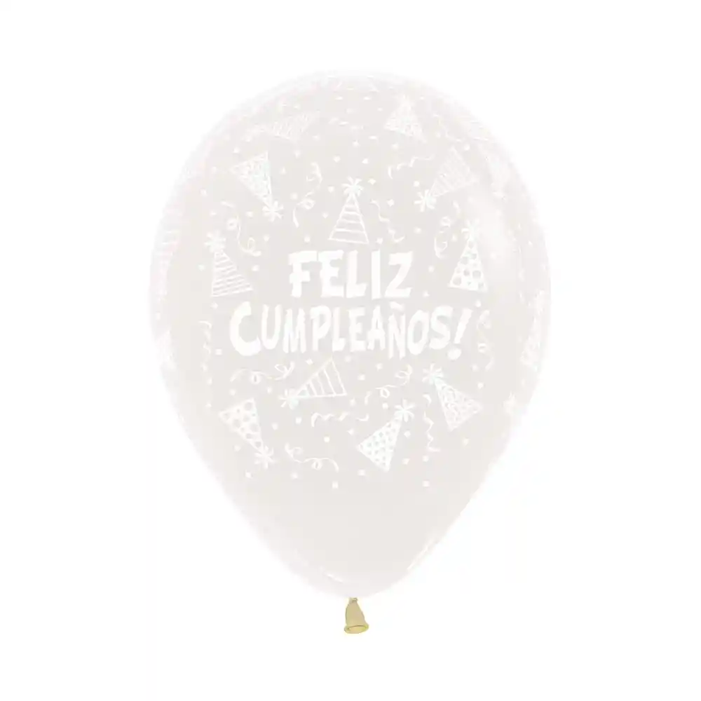 Globos Bombas R-12 X 12 Latex Redondo Infinity Feliz Cumpleaños Gorritos Transparente
