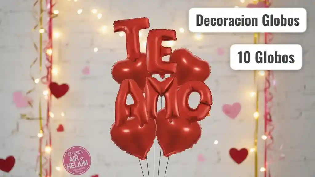 paquete con 9 bombas: 5 bombas R16 rojas con la Palabra TE AMO 4 bombas de corazon metalizadas