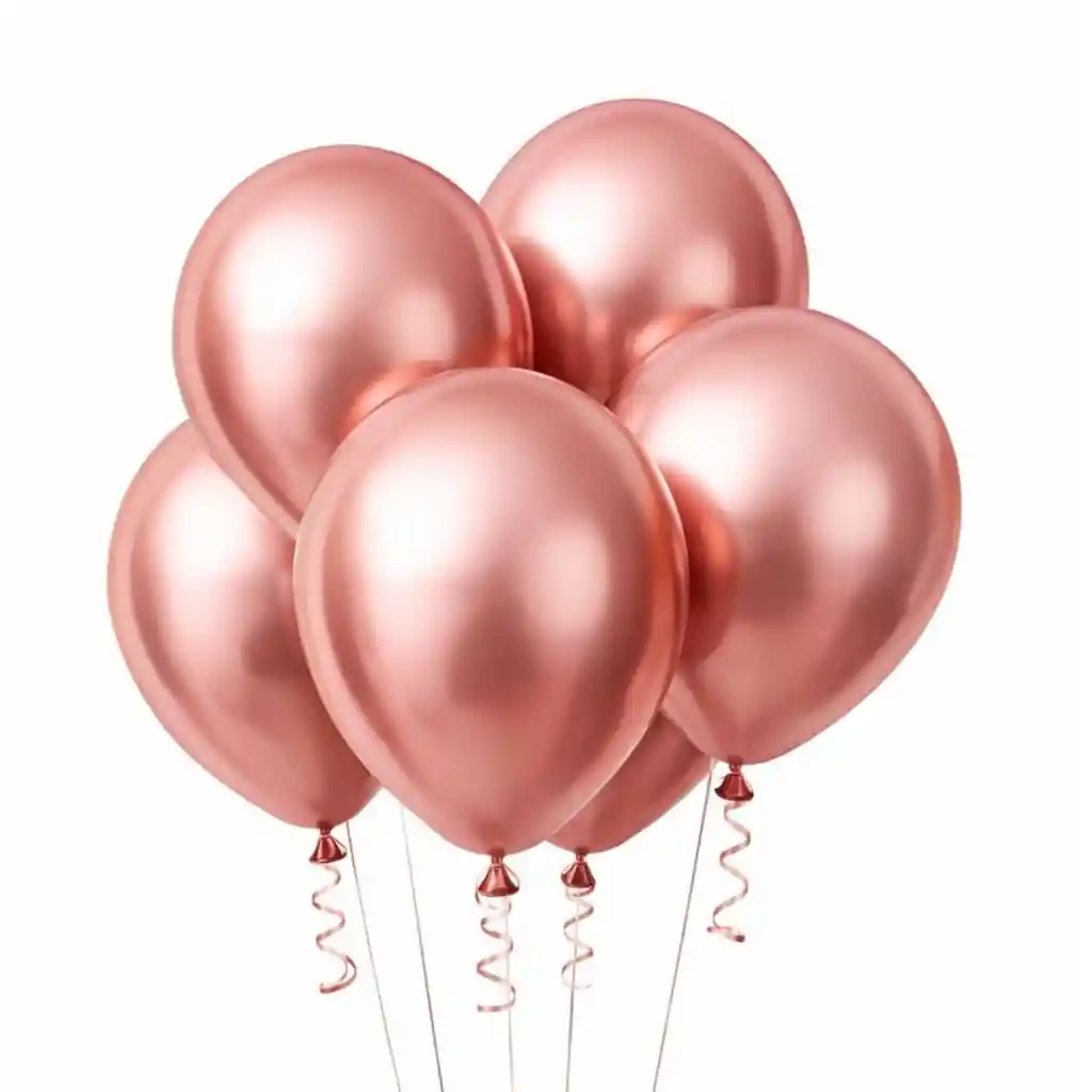 Haz que tu celebración brille con estilo gracias a este paquete de 50 globos metálicos en tono rose gold. Su acabado brillante y sofisticado los convierte en el complemento perfecto para fiestas elegantes, cumpleaños, bodas, baby showers, aniversarios o eventos corporativos. 🎈 Contenido del paquete: 50 globos en color rose gold con acabado metálico ✨ Características: Material: Látex de alta calidad con efecto perlado Tamaño: 12 pulgadas al inflar Textura suave y reflectiva que aporta un toque glamuroso Apto para inflado con aire o helio Ideal para interiores y exteriores 🎉 Usos recomendados: Perfectos para crear arcos, guirnaldas, centros de mesa, fondos fotográficos o ambientaciones temáticas. Combinan muy bien con tonos blancos, dorados, plateados o negros para lograr decoraciones modernas y elegantes.