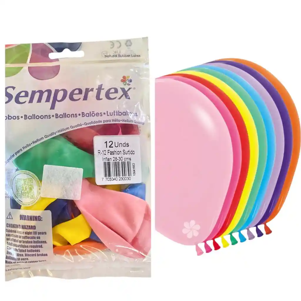 GLOBOS SURTIDOS FASHION X 12 UNDS INFLAN HASTA 30 CMS