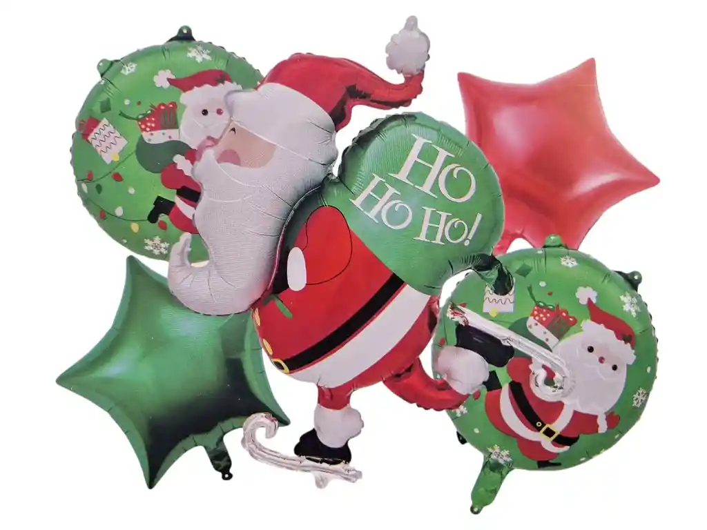 hermosos globos de Navidad - Globos 1 Globo Figura de navidad 68x53 cm 2 globos redondos de 45 cm 2 globo de estrella de 45 cm perfectos para decorar la entrada de tu oficina - tu hogar Nota: globos se Evian sin inflar
