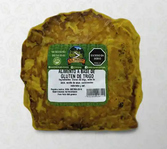 Gluten aliñado. Por 500 g. Producto vegano, apto para veganos, vegetariano, plant based, libre de ingredientes de origen animal.