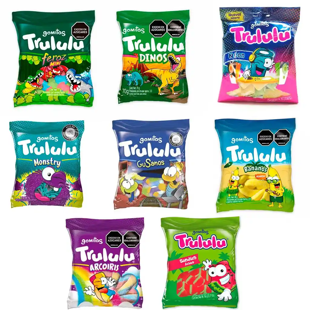 Gomas trululu. Los más deliciosos dulces para tus fechas especiales. Paquete de 70 gramos sabor surtido aleatorio.