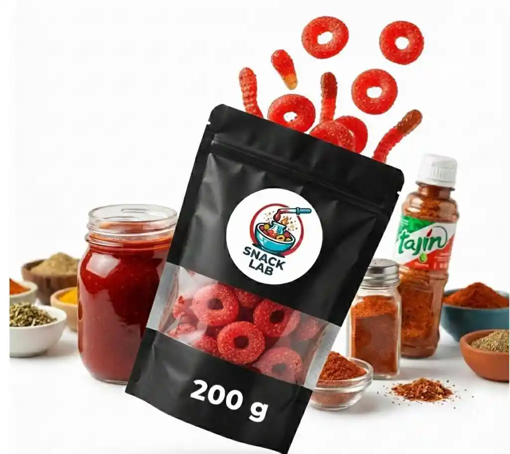 Mix grande de 200g de gomitas Trululu enchiladas con abundante chamoy y tajín 🌶️ Perfectas para compartir o para los verdaderos amantes del picante. nivel de picante: 🔥🔥🔥🔥