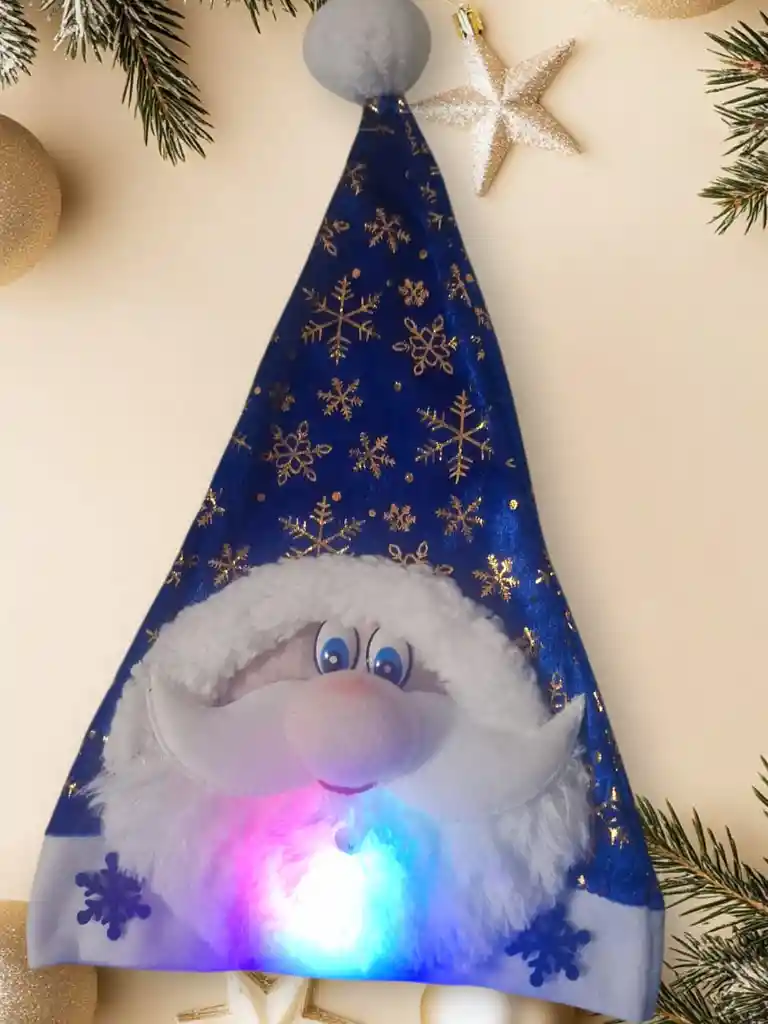 gorro de navidad de papa noel 🤶 con luces incorporadas para celebrar las novenas navideñas