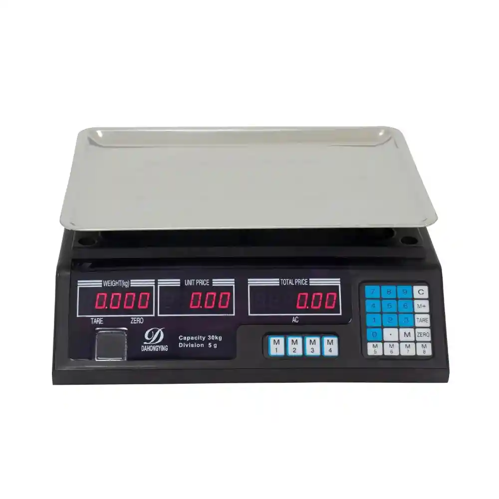 La Báscula Moresco multifunciones 40 kg es ideal para usos internos donde se requiere precisión, portabilidad y durabilidad. Su diseño compacto permite realizar pesajes exactos y eficientes en diferentes espacios. Cuenta con una estructura robusta y carcasa de alta resistencia que garantizan un desempeño confiable y prolongado. Equipada con bandeja en acero brillante, carcasa en ABS y celda de carga monobloque, ofrece estabilidad y precisión en cada medición. Su araña inferior en tubería de hierro brinda soporte firme para pesos inmóviles y cargas centradas sobre la plataforma. La capacidad recomendada no debe superar los 25 kg. Dispone de doble pantalla LED roja de alta visibilidad con funciones de peso, tara y liquidación. Su teclado con protección contra humedad incluye 8 memorias programables para almacenar precios y sumar totales. Cuenta con batería recargable interna de 4 V y cable de poder para un uso continuo. Datos Técnicos Marca: Moresco Clase: III Capacidad máxima: 40 kg División (d): 0.010 kg Escala de verificación (e): 0.005 kg Tipo: No certificada / Uso Interno Unidad de medida: Kilogramos Funciones: Peso – Liquidación – Tara – Suma de totales Alimentación: Cable de poder 110 V AC – 60 Hz y batería 4 V 4 Ah Puerto de conexión: Sin puerto serial Display: Tres displays tipo LED por dos caras Material del cuerpo: Carcasa ABS Teclado: 24 teclas tipo pulsador con protección contra humedad Tipo: De sobreponer Material de bandeja: Acero brillante Soportes de bandeja: ABS × 4 Dimensiones de bandeja: 30 × 22 cm Soportes / Patas: Rosca en ABS de alta duración Todas nuestras Básculas y Balanzas son revisadas con pesas patrón certificadas por laboratorio acreditado por la ONAC. GARANTÍA DE 1 AÑO