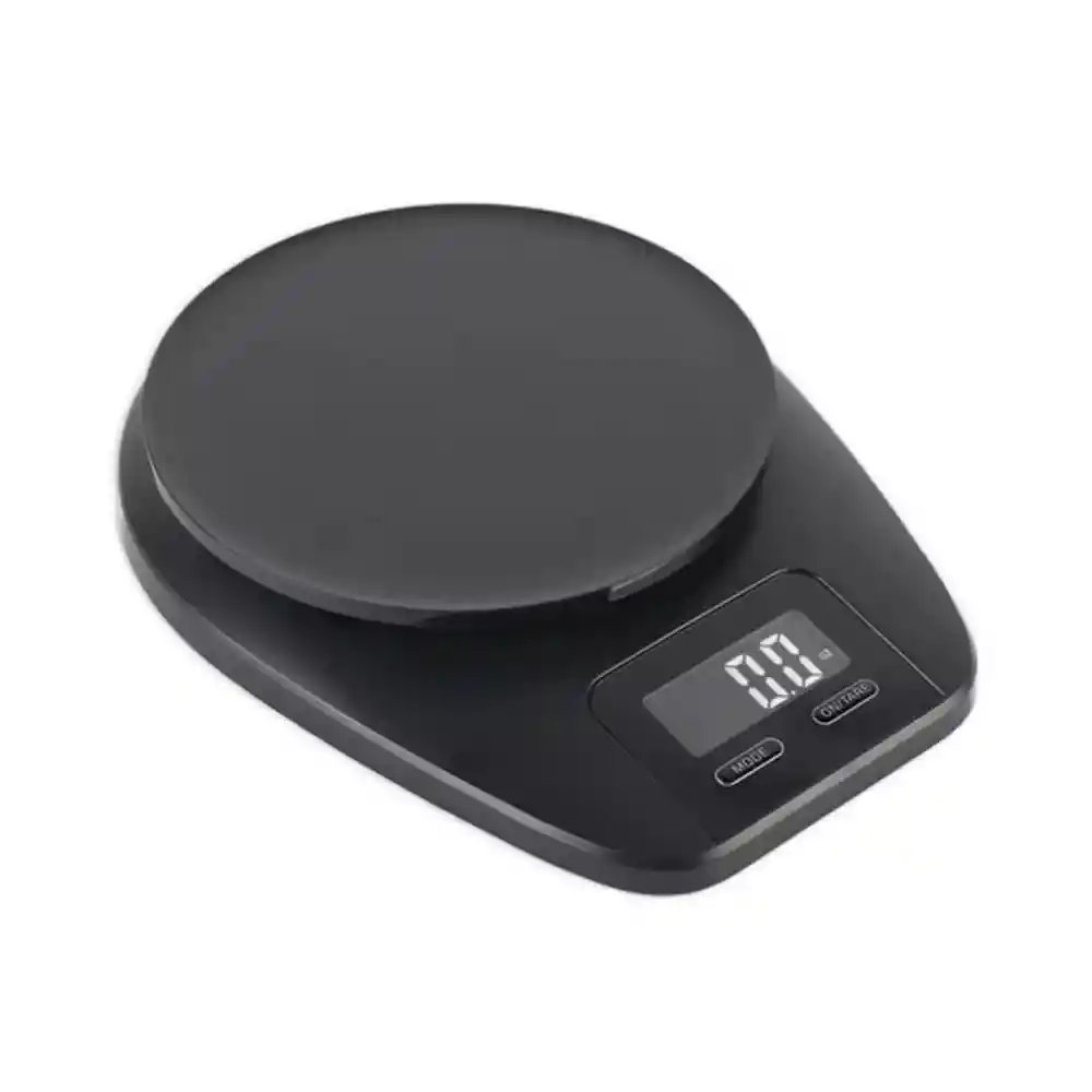 Gramera digital de cocina Capacidad: Mide hasta 5 kg (11 lbs). Precisión: Utiliza sensores de alta precisión para mediciones exactas en gramos u onzas. Funciones: Cuenta con botones para cambiar la unidad de medida (MODE) y para la función de tara (ON/TARE), que permite restar el peso de un recipiente. Pantalla: Dispone de una pantalla LCD para una fácil lectura del peso. Uso: Ideal para repostería, control de porciones y recetas que requieren medidas exactas. Uso hogar no certificado