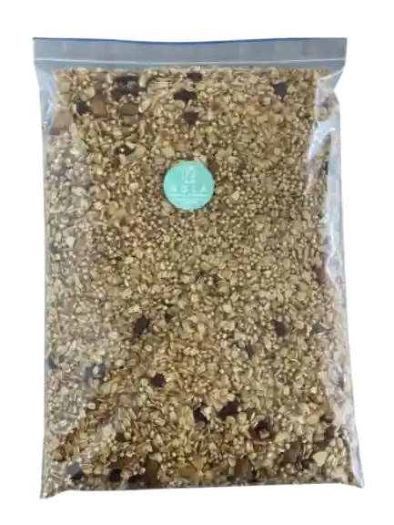 Granola vegana sabor de BANANO Y CANELA hecha con ingredientes naturales, frescos que salen directo del horno a tu mesa.