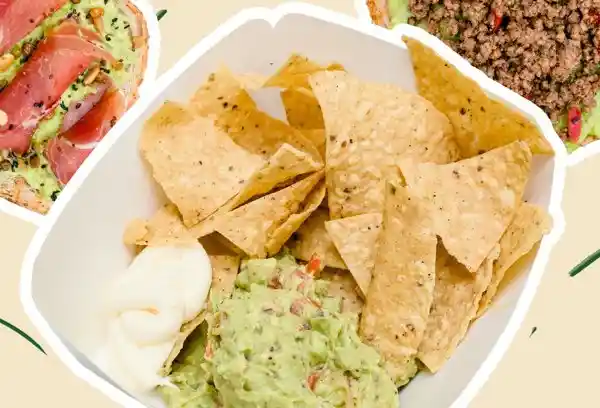 Nuestro guacamole fresco acompañado de totopos de maíz crujientes y un toque de crema agria que lo hace aún más irresistible. El snack ideal para compartir... o disfrutar solo.