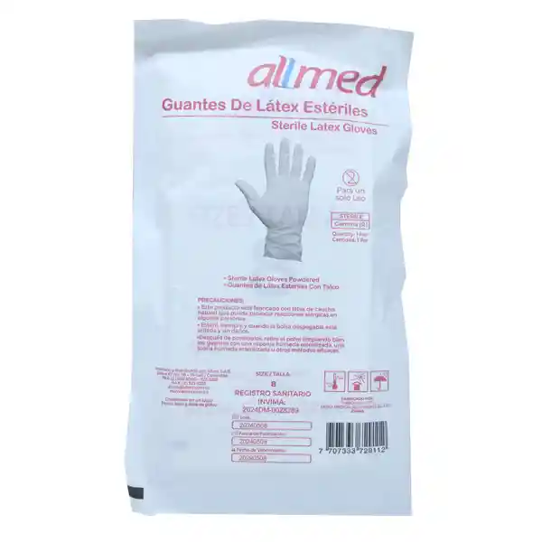 Guante quirúrgico estéril Allmed con talco, talla 8, es un producto diseñado para ofrecer seguridad, comodidad y protección durante procedimientos médicos. Su material de alta calidad, combinado con la presencia de talco, proporciona un ajuste cómodo y una excelente sensibilidad táctil, lo que facilita el trabajo del profesional de la salud en ambientes quirúrgicos. Características principales: - Esterilización: Los guantes están esterilizados, garantizando que no presenten contaminantes para el paciente ni para el personal médico. - Con Talco: El talco facilita la colocación del guante y mejora la comodidad durante su uso prolongado. - Alta calidad: Fabricados con material duradero y flexible, asegurando que no se rompan o perforen durante el uso. - Tamaño: Talla 8, adecuada para la mayoría de los profesionales de la salud, proporcionando un ajuste preciso y cómodo. Especificaciones técnicas: - Material: Látex de alta calidad, con talco para mejorar la manipulación y colocación. - Uso: Diseñado para procedimientos quirúrgicos y médicos que requieren un nivel elevado de asepsia y protección. - Estéril: Garantiza un entorno libre de contaminantes, ideal para intervenciones quirúrgicas y exámenes médicos. - Tamaño: Talla 8, ideal para manos de tamaño mediano. Contraindicaciones y precauciones: - Uso adecuado: No utilizar en pacientes con alergia al látex. Asegúrese de elegir la talla correcta para evitar incomodidades o falta de protección. - Reemplazo inmediato: En caso de que el guante presente alguna perforación o daño, debe reemplazarse inmediatamente para asegurar la protección y seguridad. Almacenaje: - Mantenga los guantes en un lugar limpio y seco, alejado de fuentes de calor y luz directa. No exponga a temperaturas extremas para evitar daños en el material. Incluye: - 1 Par de Guante Quirúrgico Esteril Allmed Con Talco Talla 8. Garantía: - Garantía por defectos de fabricación.