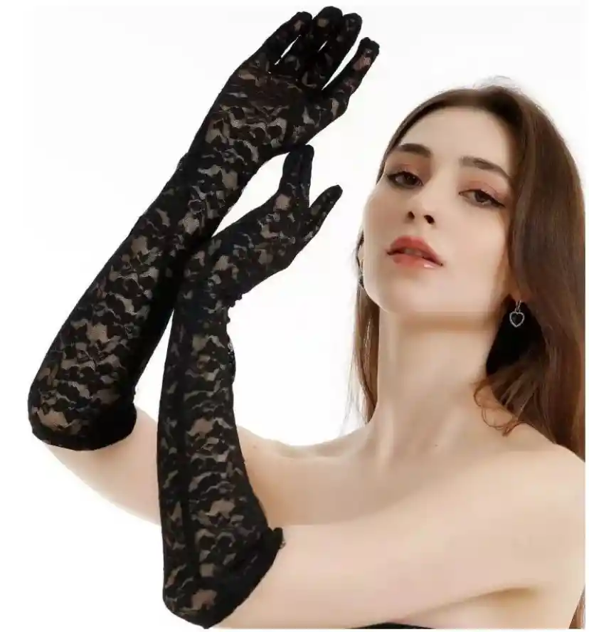 Estos guantes largos son encantadores en una tela de encaje floral negra desplazada. Lo suficientemente transparente como para mostrar su hermosa piel mientras mantiene una mística de Ladylike, seguramente sentirá un golpe por encima de su ser habitual cuando se deslice sobre estos guantes. Solo recuerda conquistarte de tus guantes con gracia. Conoces el movimiento, tirando de cada dedo mientras miras a alguien a los ojos. ¡No puedo hacer ese movimiento sin algunos guantes largos y encantadores! Recibes un par de guantes.