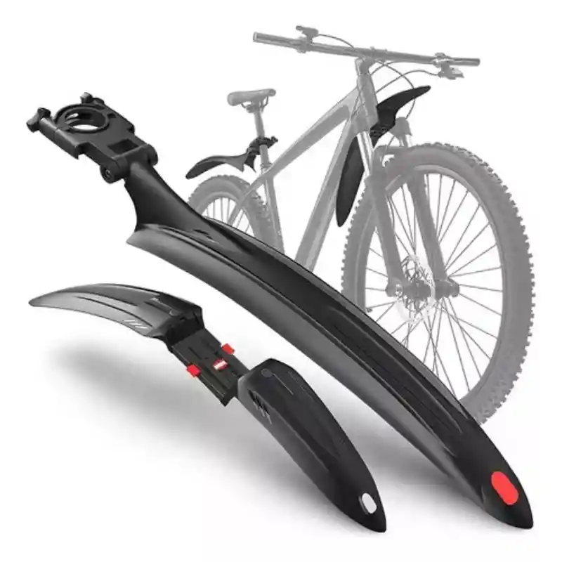 • Guardabarros Flexibles muy resistentes con una excelente protección del agua. • Compatible con ruedas de 26"/27.5"/29", fáciles de instalar y quitar mediante un simple clic. • El delantero está diseñado para suspensiones de hombro cuadrado, y es de fácil instalación. • Guardabarros trasero sujeto a la caña de sillín, fácil de instalar y regulable en altura. • Material flexible y duradero de resinas plásticas. • Flujo de aire aerodinámico. • Fácil instalación. • Compatible fon freno V-Brake y freno de disco. • Incluye la llave Allen de 5 mm. • Incluye todos los accesorios • Color Negro • Peso 132g • Se puede instalar en bicicletas con Frenos de Disco y Freno V-Brake