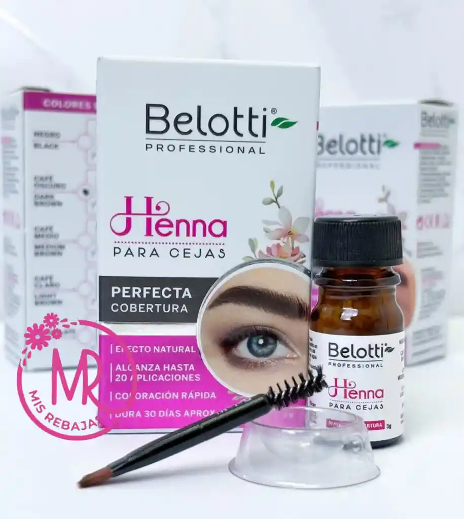 Incluye: Henna+ pincel con cepillo difuminador+ recipiente. .Modo de uso: 1. Verifique que la zona de la ceja este previamente limpia y libre de impurezas, para un mejor resultado realice una exfoliación en el área de las cejas. 2. Vierta en el recipiente la cantidad necesaria del pigmento y adicione unas gotas de agua lentamente hasta lograr una crema homogénea. 3. Aplicar y dejar actuar la henna de 5 a 20 minutos de acuerdo con la intensidad que desee. 4. Retirar la henna con algodón y agua.