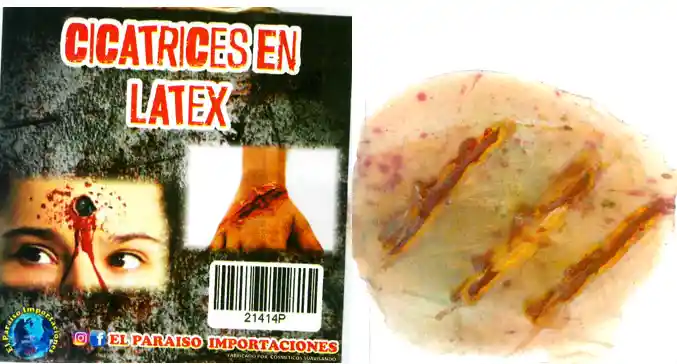 herida, pequeña en latex, hallowen, medidas, lar. 9 cm, por 7 cm ancho.