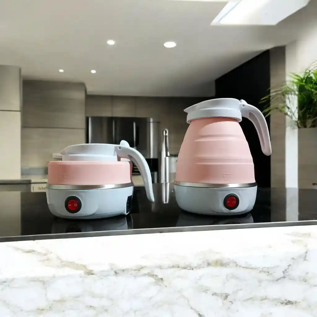 Hervidor de agua eléctrico de 600 ml Ideal para tus viajes porque es portátil y se puede plegar por su material de silicona con fondo de acero inoxidable. Puede hervir hasta 600ml de agua rápidamente (agua a temperatura ambiente). Es fácil de usar, muy eficaz, resistente y fácil de limpiar. Es super rápida equipada con tapa de seguridad que garantiza un uso de seguro. ESPECIFICACIONES Material: Acero, Silicona y Plástico Volumen: 600ml Tiempo de calentado: 5 minutos aprox. agua a temperatura ambiente Medidas plegada: 17x14cm Medidas sin plegar: 10x14cm