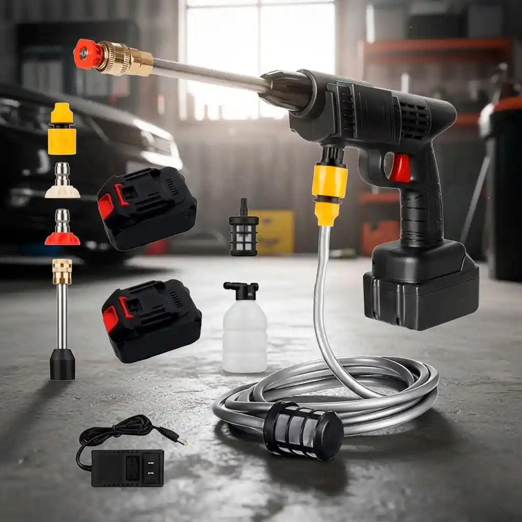 ¡Dile adiós a la suciedad con esta potente hidrolavadora inalámbrica! ✅ Chorro ajustable ✅ Filtro de acero inoxidable ✅ Botella de espuma incluida 📦 Medidas: 38 x 23 cm ¡Limpieza potente y sin cables! 🧼
