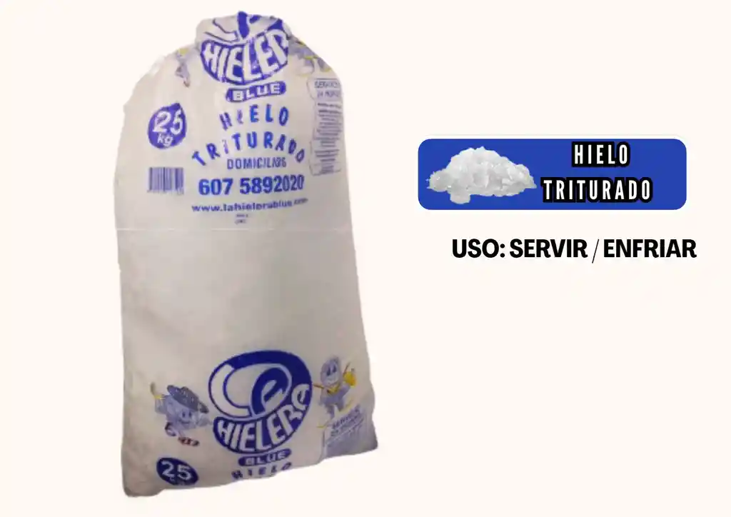 Hielo triturado de 25 kilos para enfriar o servir bebidas