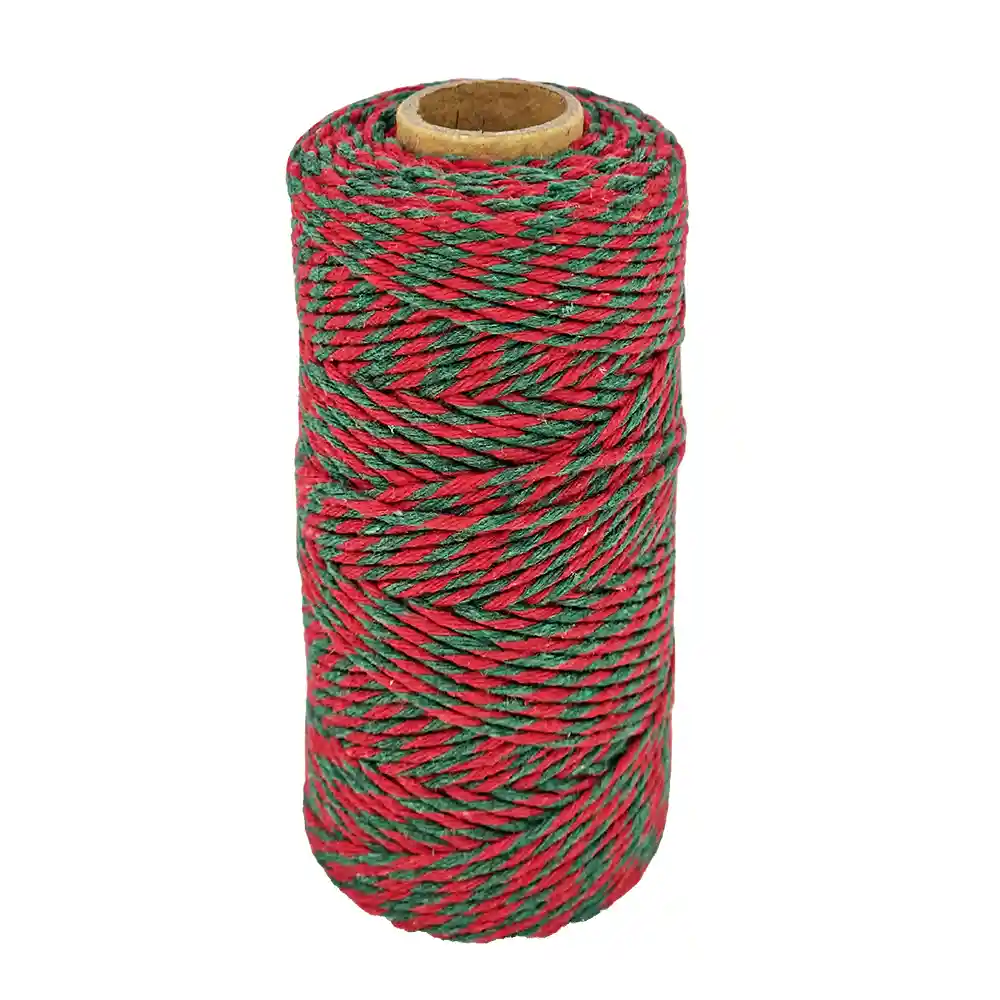 Rollo de algodón rojo con verde 2mm x 100metros. Ideal para envolver regalos, manualidades, decoración navideña y proyectos artesanales. Resistente, versátil y con un diseño festivo que realza cualquier detalle. Los colores puede diferir levemente de la imagen por condiciones de iluminación o lote.