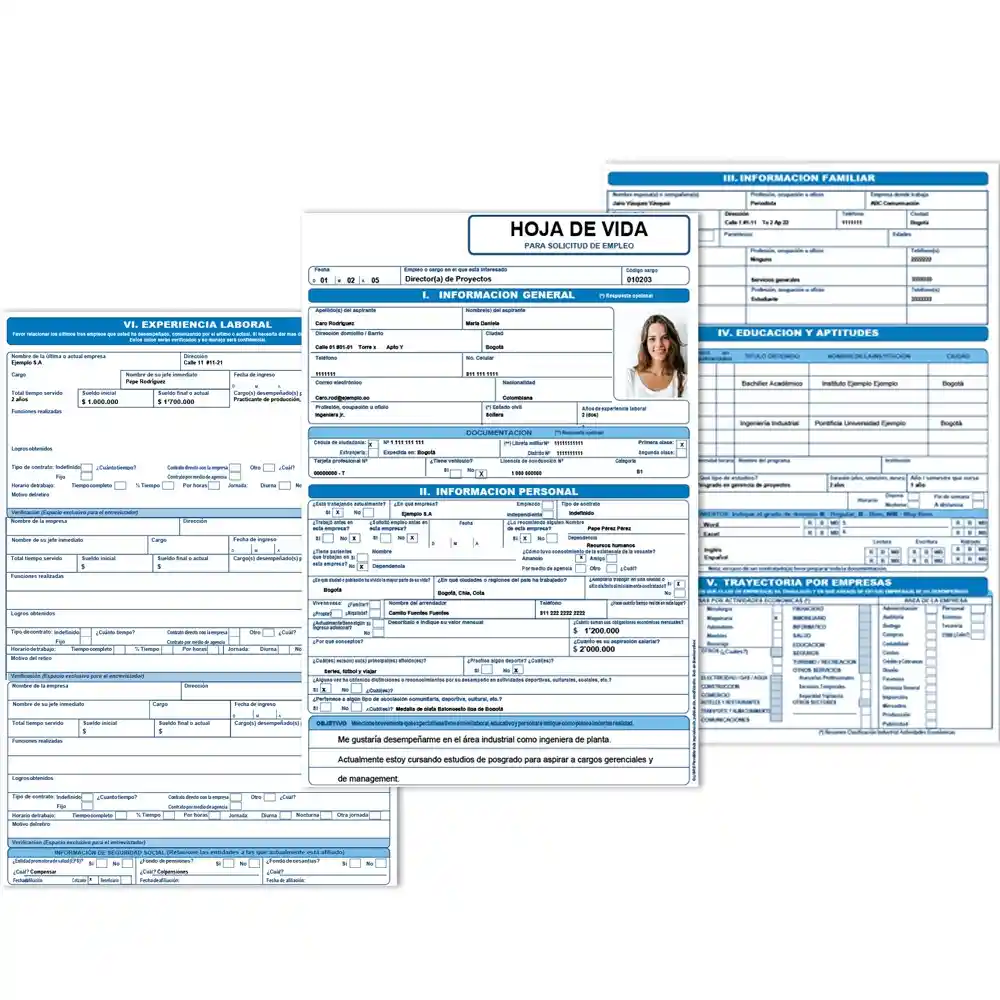 HOJA DE VIDA COLOR AZUL. FORMATO IMPRESO PARA PRESENTACIÓN DE DATOS PERSONALES Y LABORALES. IDEAL PARA PROCESOS DE SELECCIÓN Y USO INSTITUCIONAL.