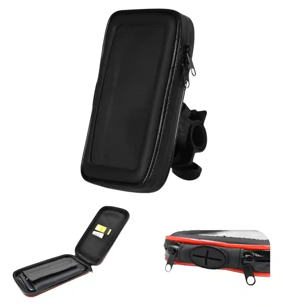 soporte te permite disfrutar de la carretera con total seguridad y comodidad. Se adapta a cualquier dispositivo de hasta 18 cm, desde smartphones hasta GPS. - Impermeable: La cremallera sellada protege tu dispositivo de la lluvia y el polvo. - Pantalla táctil: Utiliza tu dispositivo con total normalidad gracias a la ventana súper sensible.