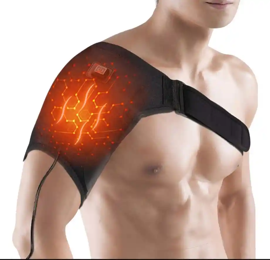esta hombre eléctrica te puede ayudar con el dolor de hombro: almohadilla térmica infrarroja incorporada para los hombros, promueve la circulación sanguínea y alivia el dolor causado por la congelación del hombro, el desgarro del manguito rotador, el esguince, la tendinitis, la parálisis, la tensión, rigidez y dolor. 3 MODO DE CALENTAMIENTO DE TEMPERATURA-Almohadilla térmica para el hombro fácil de operar, equipada con cable de alimentación USB o se puede usar en casa con un adaptador de 5V 2A, conéctelo a la toma de pared para usar. Mantenga presionado el botón durante 3 segundos para encenderlo/apagarlo, presione brevemente el botón para cambiar de modo. Ideal para usar cuando estás viendo la televisión o leyendo un libro en el sofá de casa. Esta bandolera térmica es ajustable y se puede llevar en cualquier hombro. La Correa se puede ajustar en longitud, por lo que es perfecta para cualquier forma de cuerpo. Las almohadillas térmicas para el hombro para el dolor del manguito rotador están hechas de material de neopreno de alta calidad, duradero porque la envoltura se apagará automáticamente para evitar el sobrecalentamiento. Estas almohadillas térmicas para hombros son un regalo perfecto para aquellos que lo necesitan. Es cómodo. Parámetros del producto Voltaje de salida USB: 5V/DC La Primera marcha (luz roja), la temperatura es de aproximadamente 44 °C. La segunda marcha (luz azul), la temperatura es de aproximadamente 41 °C. La tercera marcha (luz verde), la temperatura es de aproximadamente 38 ° C. Voltaje de salida del adaptador: 8,5 V/DC La Primera marcha (luz roja), la temperatura es de 56-65 °C. El segundo engranaje (luz azul), la temperatura es de 46-59 °C, La tercera marcha (luz verde), la temperatura es de 40-45 °C