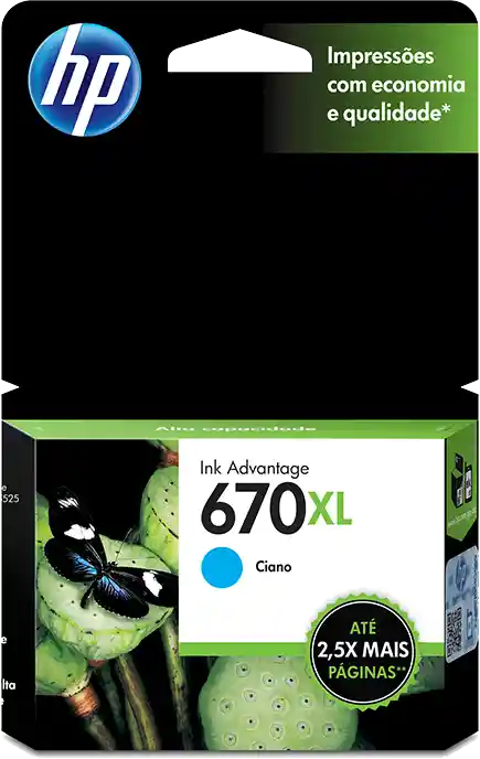 Hp Tinta 670xl Cyan Impresora 750paginas. Compatible con: Impresora HP Deskjet Ink Advantage 4615 All-in-One (CZ283A). Impresora HP Deskjet Ink Advantage 4625 e-All-in-One (CZ284A). Impresora HP Deskjet Ink Advantage 5525 e-All-in-One (CZ282A). *Promedio aproximado según la Norma ISO/IEC 24711. Ref CZ118AL
