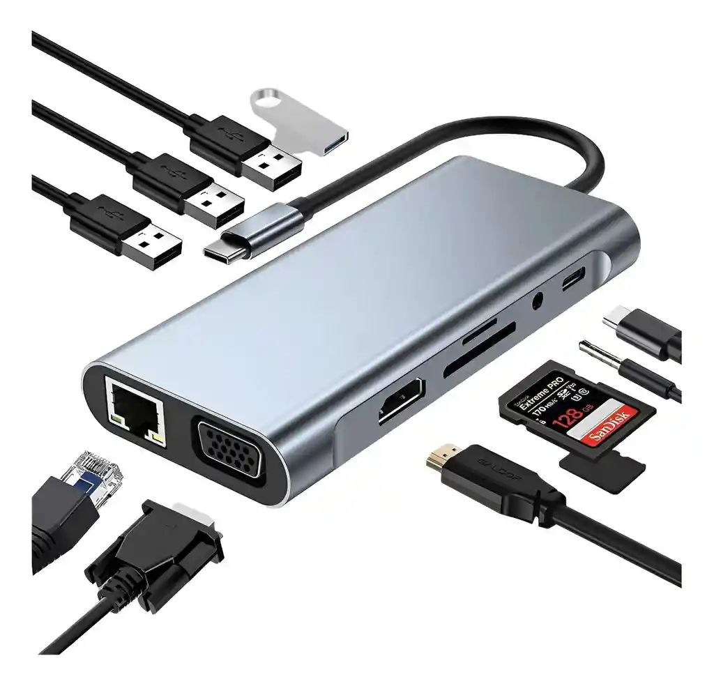 HUB 11 en 1 4K USB C 3,0 tipo C a HDMI, adaptador USB 3,0 compatible con base de cubo tipo C PD 87W, divisor USB C para MacBook Pro Air Y windows, tambien compatible con Iphone