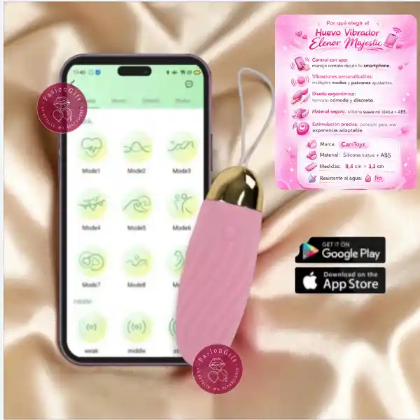 El Huevo Vibrador Elenor Majestic combina tecnología y estimulación personalizable en un diseño compacto y discreto. Su sistema de control mediante aplicación móvil permite ajustar las vibraciones a distancia, crear patrones personalizados y explorar diferentes intensidades desde tu smartphone. Fabricado en silicona suave y ABS seguro para el cuerpo, ofrece una textura agradable al tacto y un uso cómodo. Su diseño ergonómico y compacto facilita la colocación y el manejo, permitiendo una experiencia adaptable tanto para uso individual como en pareja. Distribuido por PasionGift, este dispositivo integra innovación, comodidad y conectividad para quienes desean experimentar nuevas formas de estimulación. Características • Control remoto mediante aplicación móvil • Vibraciones personalizables con múltiples patrones • Diseño ergonómico y discreto • Fabricado en silicona suave + ABS seguro • Tamaño compacto fácil de usar Especificaciones • Marca: CamToyz • Material: Silicona suave + ABS • Medidas: 8,8 cm × 3,3 cm • Resistente al agua: No • Uso: Femenino Recomendación Para mayor comodidad se recomienda utilizar lubricantes a base de agua. Evitar lubricantes de silicona para proteger el material. Limpiar el producto antes y después de cada uso. Distribuidor: PasionGift
