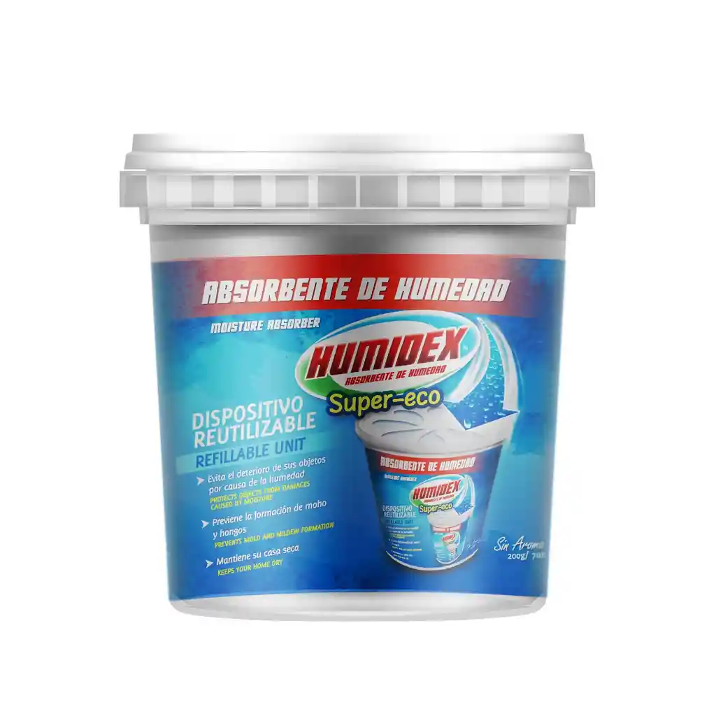 Mantiene tus espacios secos, frescos y libres de humedad. Elimina los malos olores. Prolonga la vida de los objetos guardados en áreas no ventiladas. Envase reutilizable. Incluye: 1 bolsa de absorbente de humedad 200 g.
