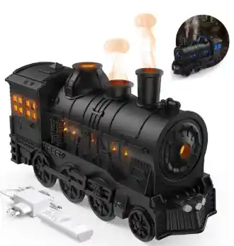 humidificador ultrasónico de niebla fría que combina humidificación del aire, aromaterapia, iluminación ambiental, luz nocturna y adornos vintage. Forma retro tren se combina con la función de un humidificador con un color negro clásico y elegante para un estilo único. Luz LED + efecto de humidificación que proporcionan un viaje realista e inquietante en el tren, lo que lo convierte en el regalo perfecto para los amantes del tren y los amantes de la decoración vintage