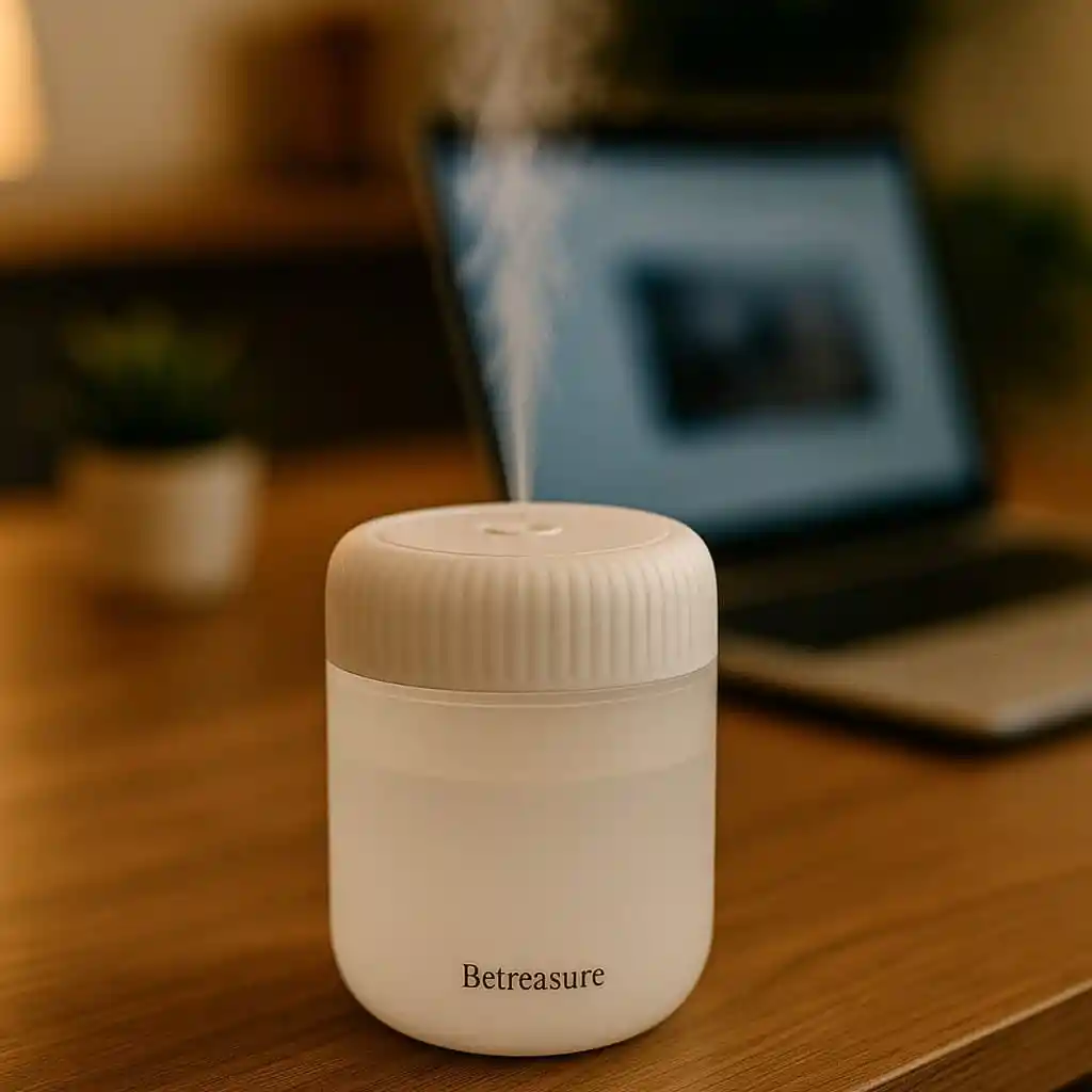 Humidificador y difusor de aroma que funciona con agua y esencias hidrosolubles, liberando una suave niebla para humidificar y aromatizar el ambiente. Para usarlo, llena el depósito con agua, agrega aproximadamente ente 10 a 15 gotas de esencia, cierra el dispositivo y enciéndelo para disfrutar del aroma. No incluye esencia.