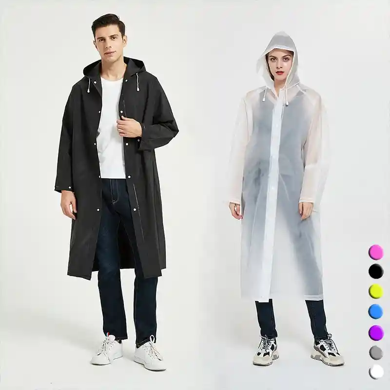 Colores Disponibles: Negro, Blanco, Morado Protege tu día de lluvia con nuestro impermeable Eva Raincoat! Fabricado con material EVA de alta calidad, este impermeable es ligero, duradero y 100% impermeable. Ideal para cualquier ocasión, ya sea un paseo en la ciudad, una caminata en la montaña o un día de camping. Con su diseño elegante y funcional, te mantendrás seco y con estilo. ¡No dejes que la lluvia te detenga! Compra tu Eva Raincoat hoy y disfruta de tus actividades al aire libre sin preocupaciones.