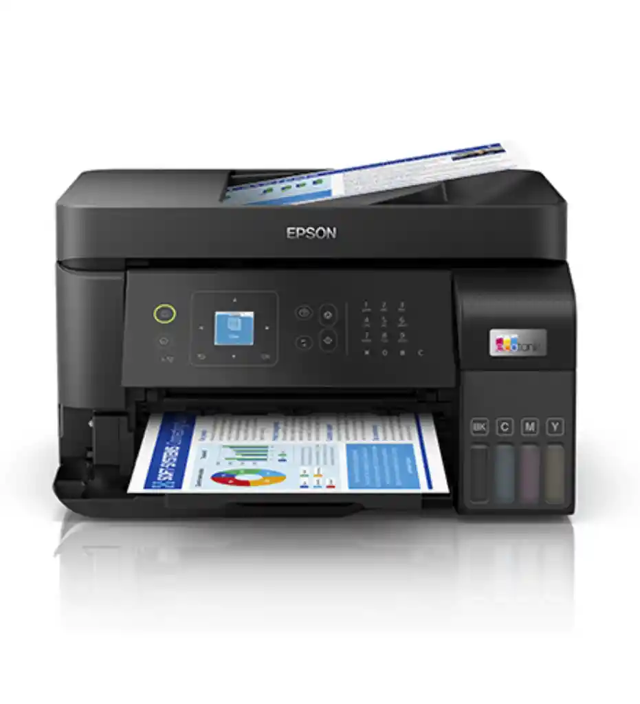 La Epson EcoTank L5590 es una impresora multifuncional 4 en 1 (imprime, copia, escanea, fax) sin cartuchos, ideal para oficinas y hogar, que ofrece alta productividad con su tecnología Heat-Free PrecisionCore, velocidades rápidas (hasta 15 ppm ISO negro) y bajo costo por página gracias a sus tanques de tinta recargables, con conectividad Wi-Fi, Ethernet y USB, y funciones avanzadas mediante la app Epson Smart Panel.